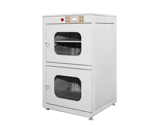 Шкаф сухого хранения,  предназначен для хранения печатных плат, SMD-компонентов, чувствительных к влаге, и других объектов. Он позволяет постоянно поддерживать заданный уровень влажности для качественного просушивания содержимого в течение 24 часов. Просушка осуществляется системой автоматического контроля.