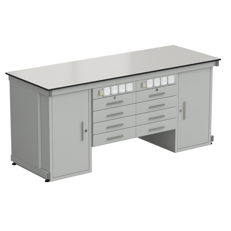 56.0551.00.08 Стол демонстрационный с двумя напольными тумбами, двумя подвесными тумбами, с электрикой 2000х750х900, раб. поверхность - LABGRADE