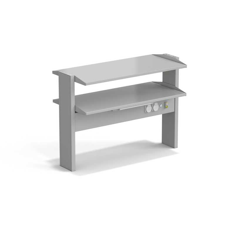 Стеллаж островной предназначен для комплектации пристенных столов и служит для увеличения рабочей площади стола, ярусности размещения лабораторного оборудования и лабораторной посуды.
