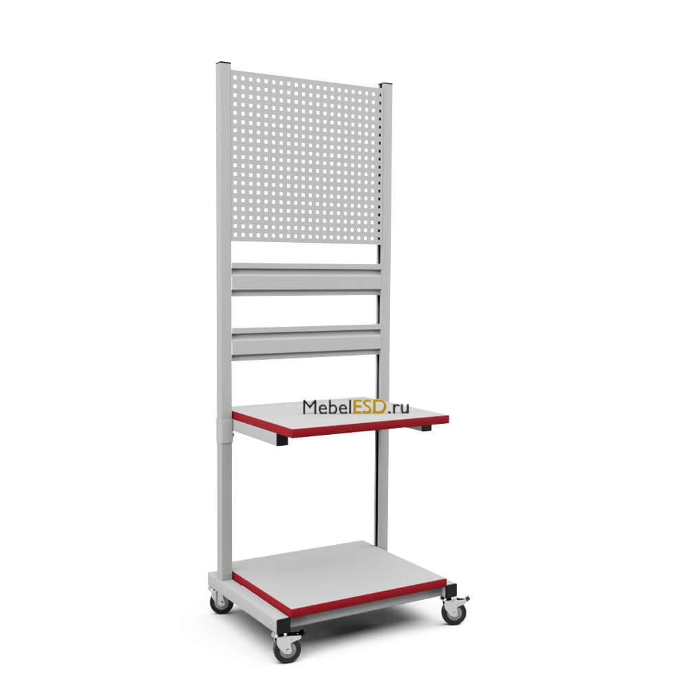 — знак ESD (Electrostatic sensitive device), обозначающий работу с материалами, чувствительными к электростатическому разряду. В комплект поставки антистатической стойки входит набор ESD колес.